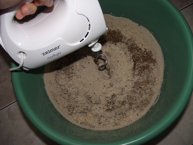 Wszystkie te płynne składniki dokładnie mieszamy z jajkami przy pomocy robota kuchennego. Przy małej ilość miksu wystarczy ręczny robot, przy większych ilościach niezbędny będzie już profesjonalny mieszalnik.