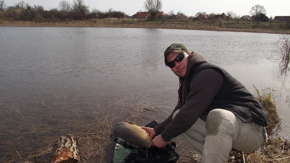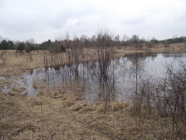 Wybór łowiska na pierwszą w tym sezonie zasiadkę nie był przypadkowy, w planach był niewielki zbiornik, gdzie woda szybciej się nagrzewa i gdzie zlokalizowanie karpi nie jest tak trudne jak w przypadku dużej wody, padło na niewielką gliniankę nieopodal Odry. To była glinianka PZW, od zeszłego roku przeszła w ręce karpiarzy, powstaje tam nowe łowisko karpiowe, o dzikim charakterze, woda kryje niezły potencjał, ale nie jest to łatwe łowisko, po spiętrzeniu wody o ponad dwa metry, kryje mnóstwo zatopionych trzcin, także dokładne rozpoznanie i sondowanie dna to podstawa na tej wodzie.