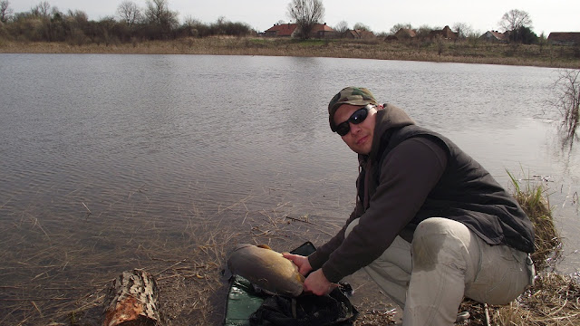 Po przyjeździe nad wodę zastała mnie zima, temperatura - 5 stopni, woda do ok pół metra od brzegu przymarzła, byłem tam jeszcze przed wschodem słońca , jak tylko wzeszło słońce temperatura wzrosła i od razu zrobiło się wiosennie i pełen entuzjazmu rozładowałem cały karpiowy majdan i wypłynąłem na wodę szukać miejscówek.