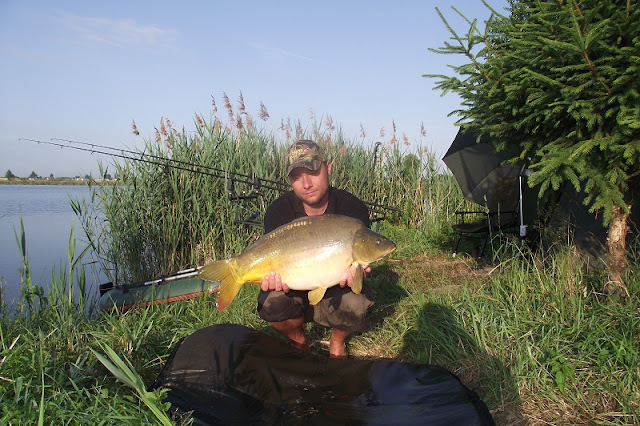 Tym miłym akcentem zaczęła się kolejna doba zasiadki, zbliżał się wieczór, komary gryzły niemiłosiernie ale noc przyniosła nam miłe zaskoczenie. Kamil wyholował pięknego złotołuskacza z miejscówki na która stawiałem jako najlepszą, karp ponad 15kg - wielka radość !