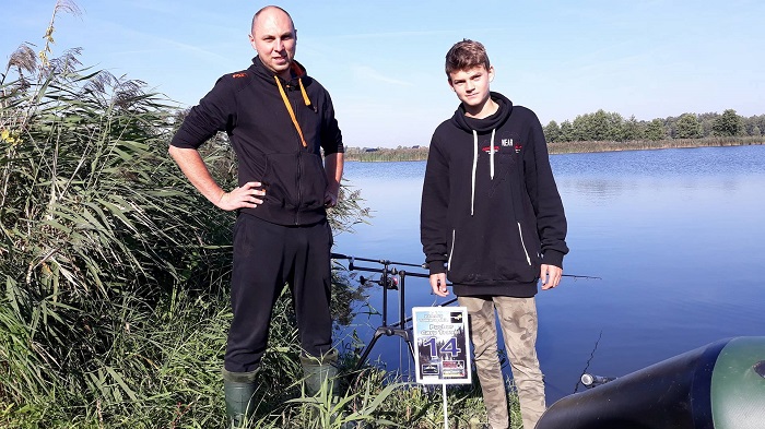 Pierwsza ryba zawodów: karp 13,500 Przemysław Baj