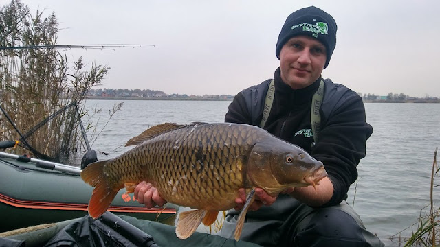 Udana jesienna zasiadka Teamu CarpTravel gdzie udało się złowić piękne ryby w tym dorodnego karpia pełnołuskiego 18,200 kg na żwirowni Strefa Ciszy w Spalonej. Przynętą jaką był bałwanek Krab Japoński i Kałamarnica Profess, sprawdził się na wielu już wodach. Zestawy położone na 8 metrach. Nęcenie raczej na drobno i niewiele, pellety od 2 do 12mm i kilka kulek na zestaw z podpiętą PVA z Method miksem. To wystarczyło. Zasiadka kilkudniowa ale ciemne i długie noce nie przeszkadzały a wręcz motywowały i uruchamiały wyobraźnię. W tej wodzie pływa więcej takich i większych ryb ale dotarcie do nich jest trudne, chimeryczna woda, jaką jest głęboka żwirownia, wymaga poświęcenia jej czasu i poznania bytowania ryb i tras ich przemieszczania w nie małym bo 35 hektarowym zbiorniku. My tam na pewno jeszcze wrócimy :)