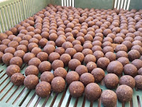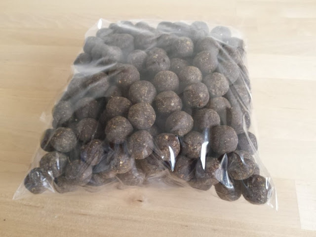 Następnie dzielę je na dwie części. Jedne przesypuje do foliowego worka, bo będą to kulki zanętowe.