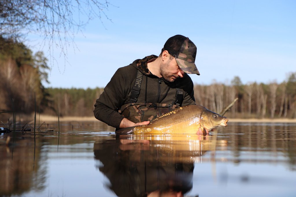 Wiosenna zasiadka nad jedną z leśnych wód to był początek naszego karpiowego sezonu. Woda bardzo urokliwa, dla nas zupełnie nie znana, wszystko było do odkrycia. Takie karpiowe zasiadki na zupełnie nowych nie znanych wodach, które nie są jeszcze publicznie dostępne, są zawsze bardzo interesujące, ponieważ umożliwiają nam szeroki, niczym nie skrępowany wachlarz działań. Tu nie było mowy o stanowiskach, wyznaczonych miejscach połowu, czy też wyrysowanych liniach na mapkach, które całkowicie nas ograniczają. Nad tą wodą wróciliśmy do tego co naturalne, do poszukiwania ryb – prawdziwego wędkarstwa karpiowego. Nie było nam jednak dane odkryć te wodę, była nieposkromiona, trudna i tajemnicza. A więc przed nami kolejne podejście do tego tematu i praca – takie jest wędkarstwo.